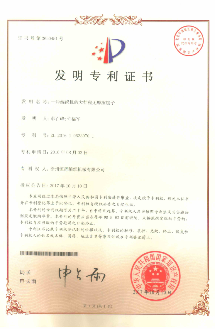 证书号第2650451号